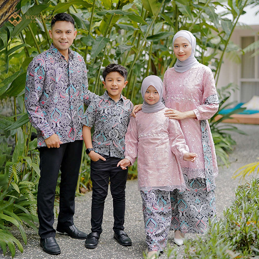 SET FAMILLY KEBAYA BATIK COUPLE LYDIA BROKAT TILLE MUTIARA ROK SPAN PINGGANG KARET KEBAYA ALLSIZE