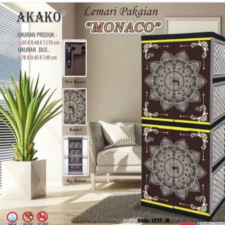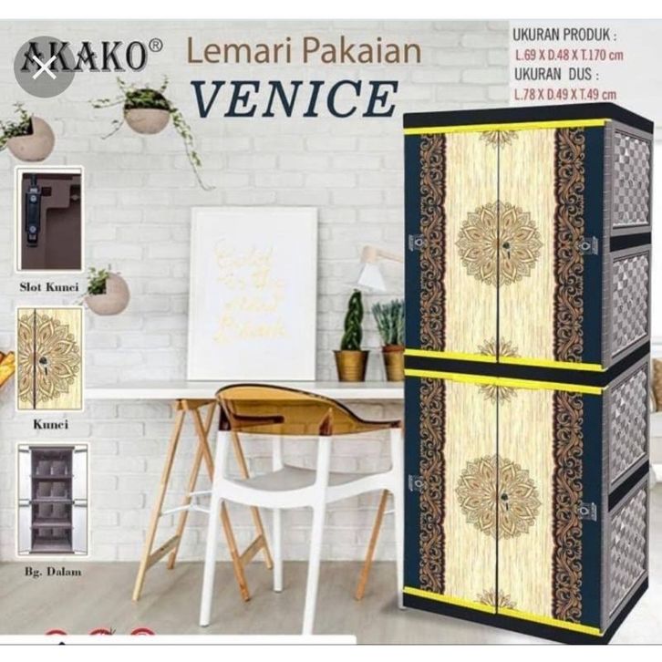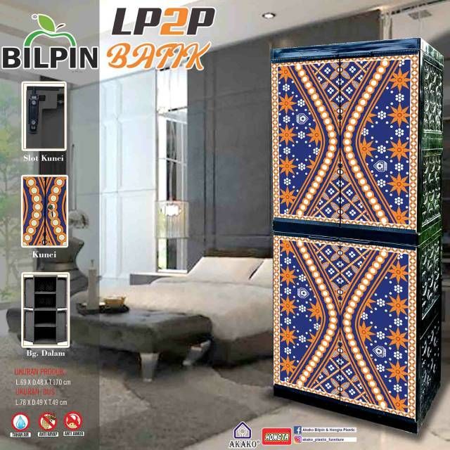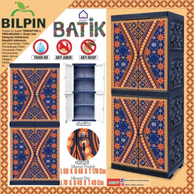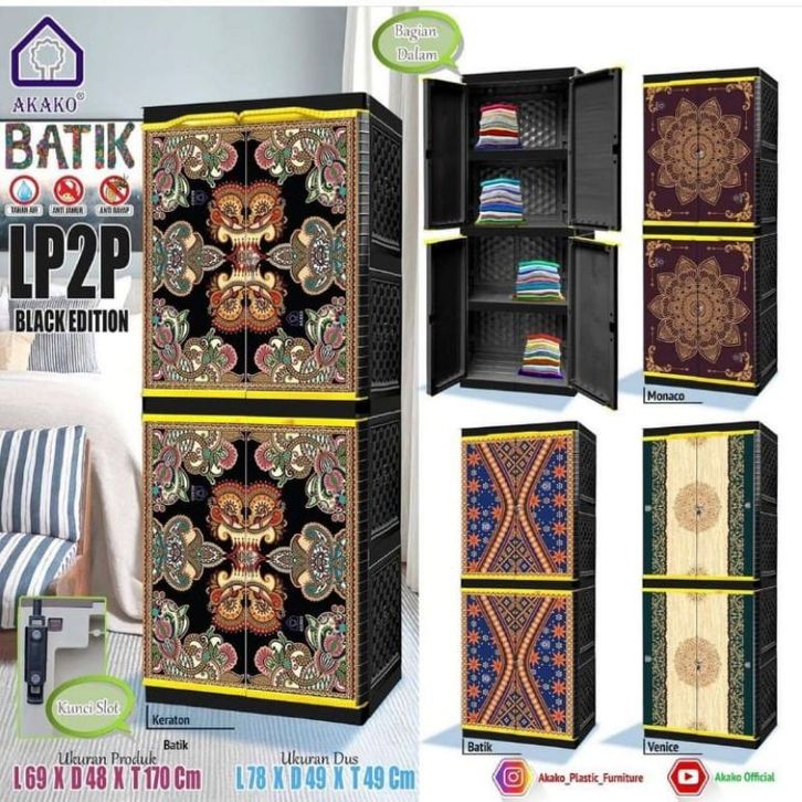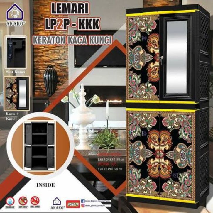 AKAKO - Lemari Akako Tiptop Gantung + Rak + Kunci + Kaca Plastik 2 Pintu LP2P motif BATIK, Keraton, Venice, dll