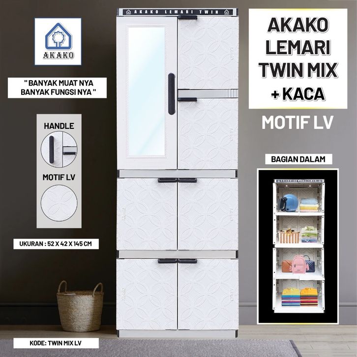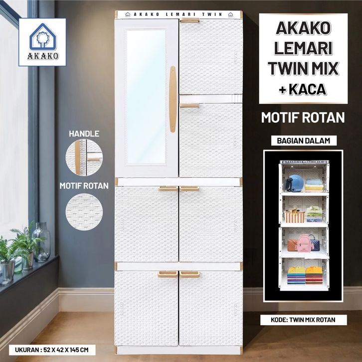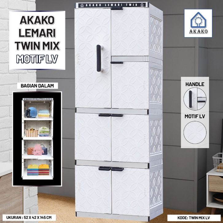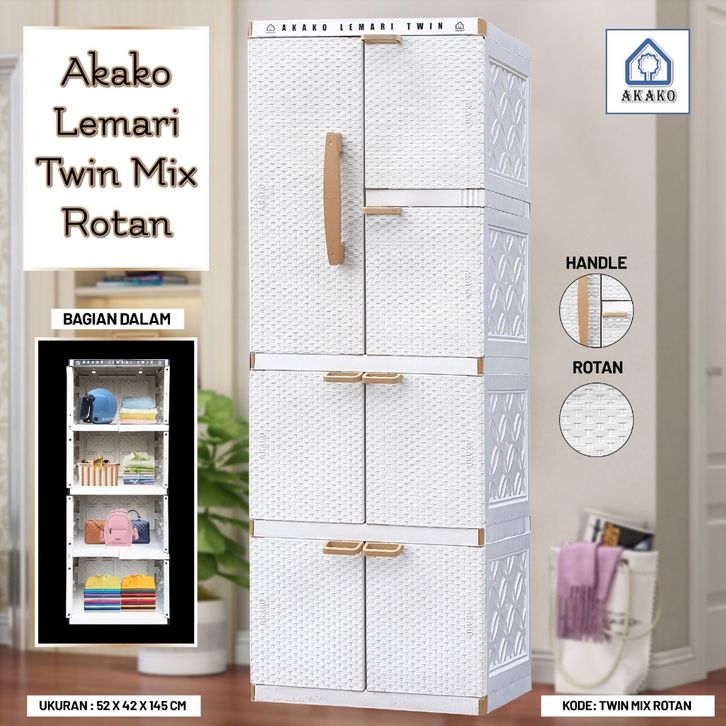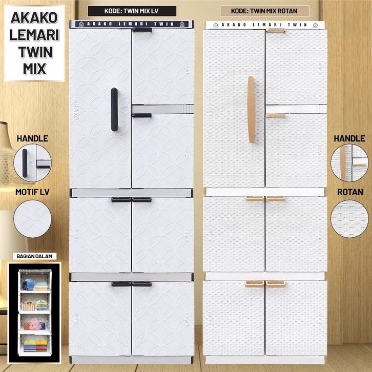 AKAKO - FULL GARANSI !!! LEMARI PAKAIAN PLASTIK AKAKO LEMARI TWIN MIX ROTAN DAN LV Lemari Serbaguna