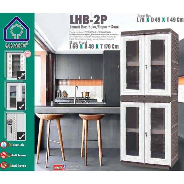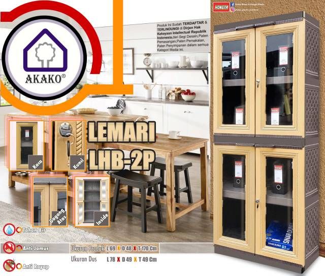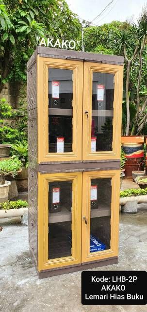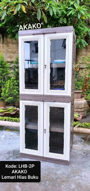 AKAKO - Lemari 2 Pintu Hias Buku motif Rotan + Kaca Bening + Kunci ( NEW )