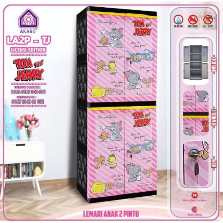 AKAKO - Lemari Anak 2 Pintu 4 Susun Printing + Rak + Kunci Motif Printing LA2P ( NEW PROMO )
