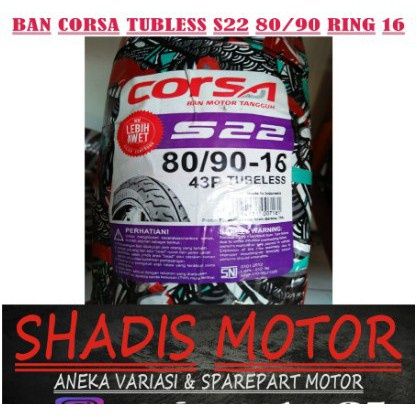 Ban Motor Merk Corsa Tubeless Tipe S22 Ukuran 80/90 Ring 16 Ban Motor Tubless