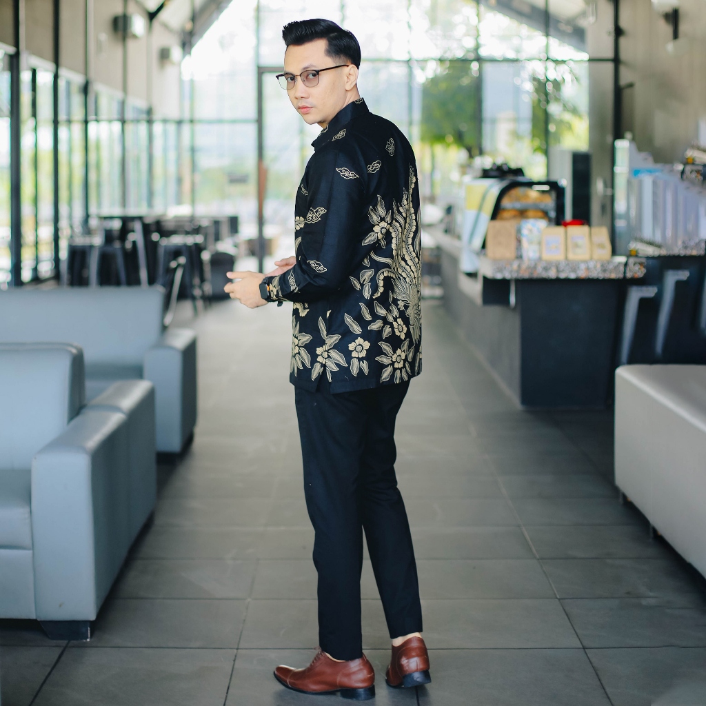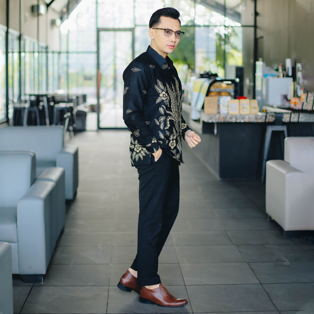KEMEJA BATIK PRIA SLIMFIT LAPIS FURING ABIYASA BAHAN KATUN LENGAN PANJANG MOTIF SAWUNGGALING AGENG BAJU BATIK