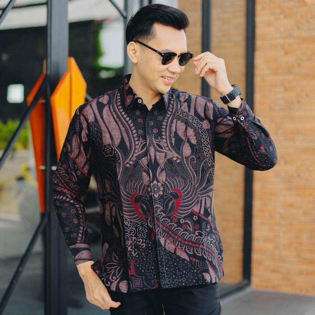 KEMEJA BATIK PRIA SLIMFIT LAPIS FURING KAMAJAYA BAHAN KATUN LENGAN PANJANG MOTIF PARANG MERAK