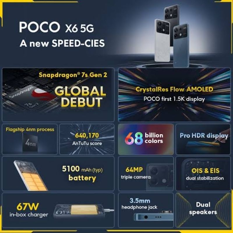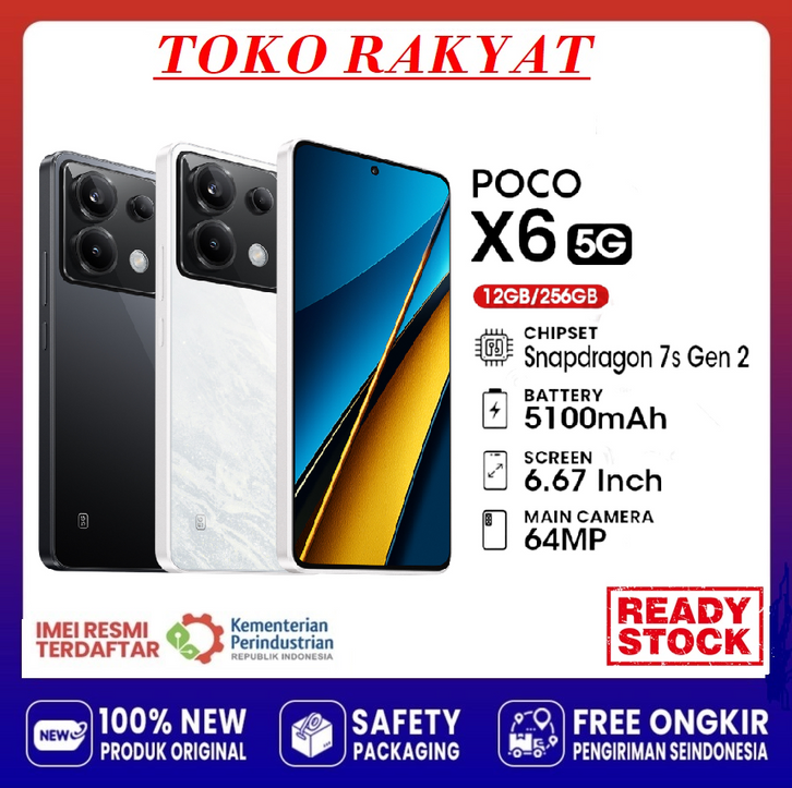 (BEBAS ONGKIR) Hp XIAOMI POCO X6 5G 12+256GB | Snapdragon 7s Gen 2 | Camera 64MP | Batery 5100mAh