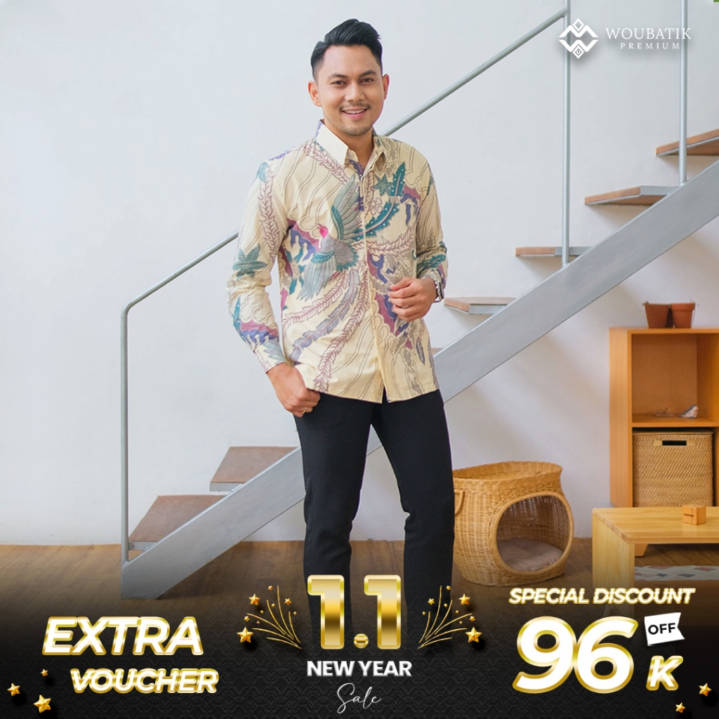 KEMEJA BATIK GAYATRI KEMEJA PRIA SLIMFIT BERFURING KATUN PRIMISSIMA LENGAN PANJANG SIZE M L XL