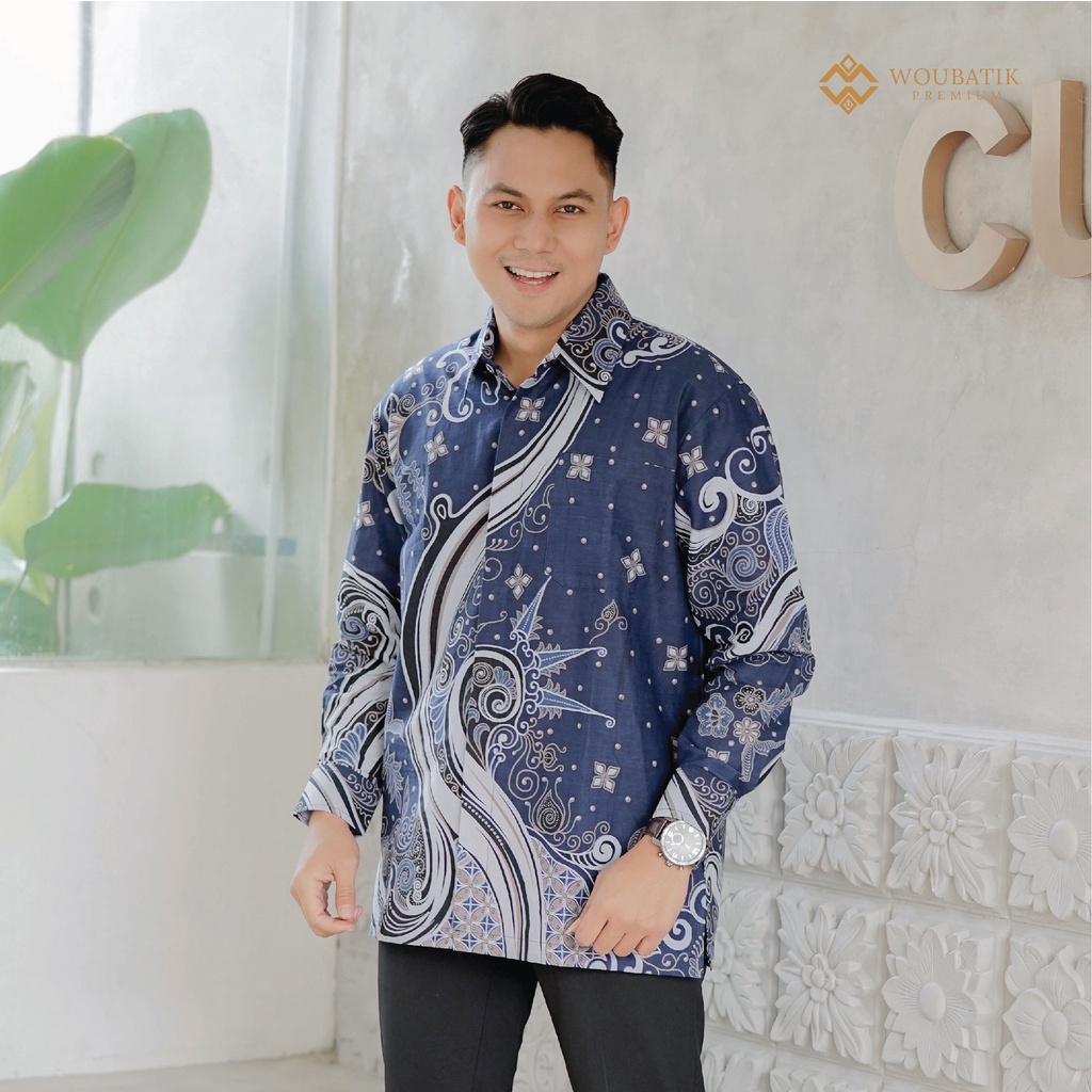 KEMEJA BATIK PRIA MODERN LENGAN PANJANG CASUAL MODIS SLIM FIT TRENDY MASA KINI KEMEJA KERJA KEMEJA SLIMFIT