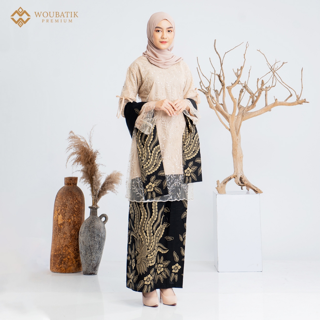 KEBAYA BATIK COUPLE NABIA KATUN PRIMA ATASAN BROKAT ROK SPAN PINGGANG KATUN ALLSIZE