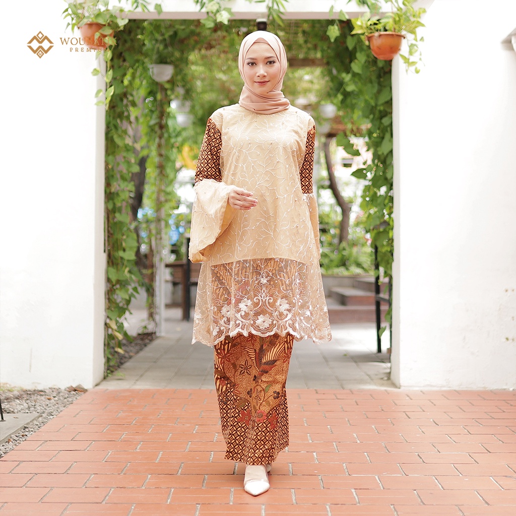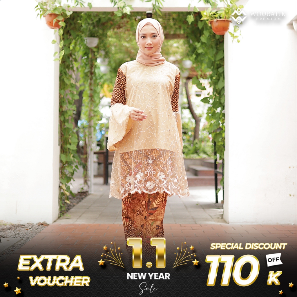 KEBAYA BATIK SILVANA KATUN PRIMA PREMIUM ATASAN BROKAT ROK SPAN PINGGANG KARET ALLSIZE