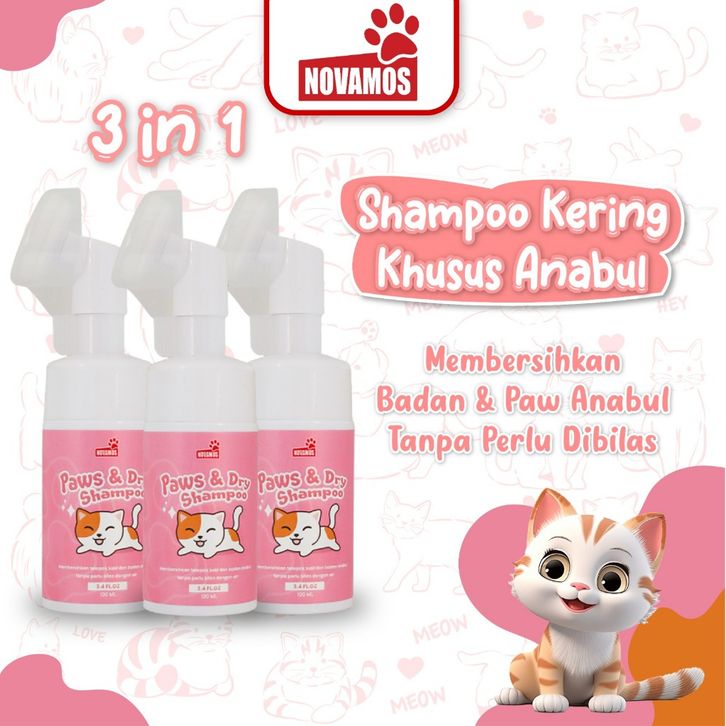 TERMURAH NOVAMOS Shampoo Kering Kucing dan Anjing Paws & Dry 100 ML ( 3 pcs lebih hemat )
