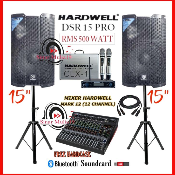 Paket Sound System 15 Inch Hardwell DSR 15 PRO Full Hardwell Mixer 12 Ch Siap Pakai