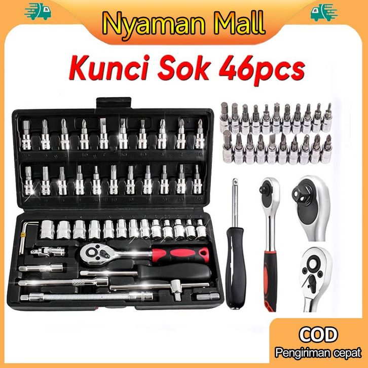 Set Kunci Sok Kunci Shock 46 pcs Mobil Motor Lengkap Socket Tool Kit set Pas Ring Motor Mobil