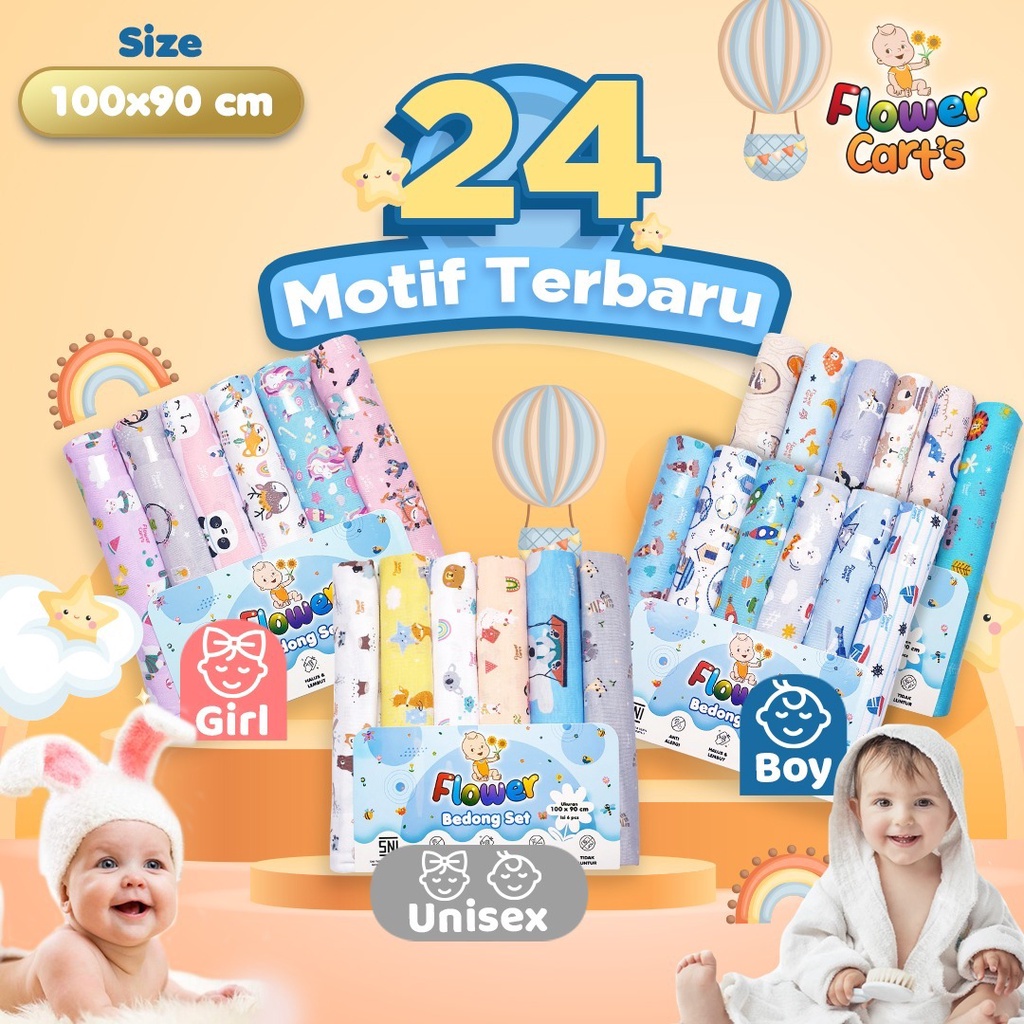 FLOWER BEDONG BAYI MOTIF & POLOS ISI 6 DAN 3 PCS (SNI) / PERLENGKAPAN BAYI BARU LAHIR