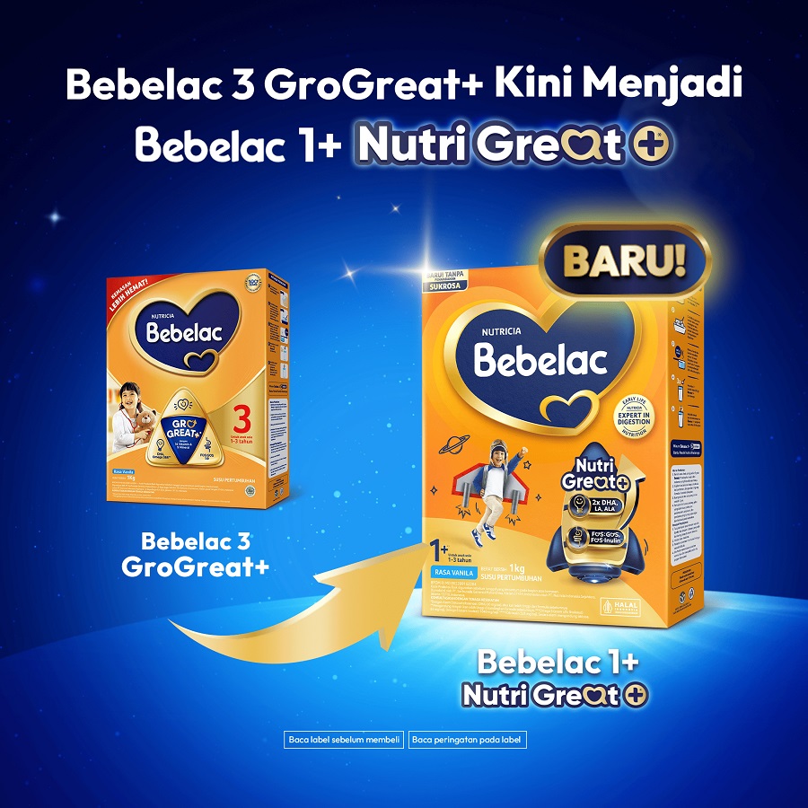 Bebelac 1+/3+ (1-3 Tahun) - (6-12 Tahun) Vanila/Madu 1000 gr Susu Pertumbuhan Bubuk