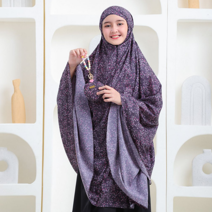 Mukena Anak Perempuan Mukena Traveling Pouch Mini Anak Perempuan Resleting 6-12Th Parasut Motif Lucu Kombinasi