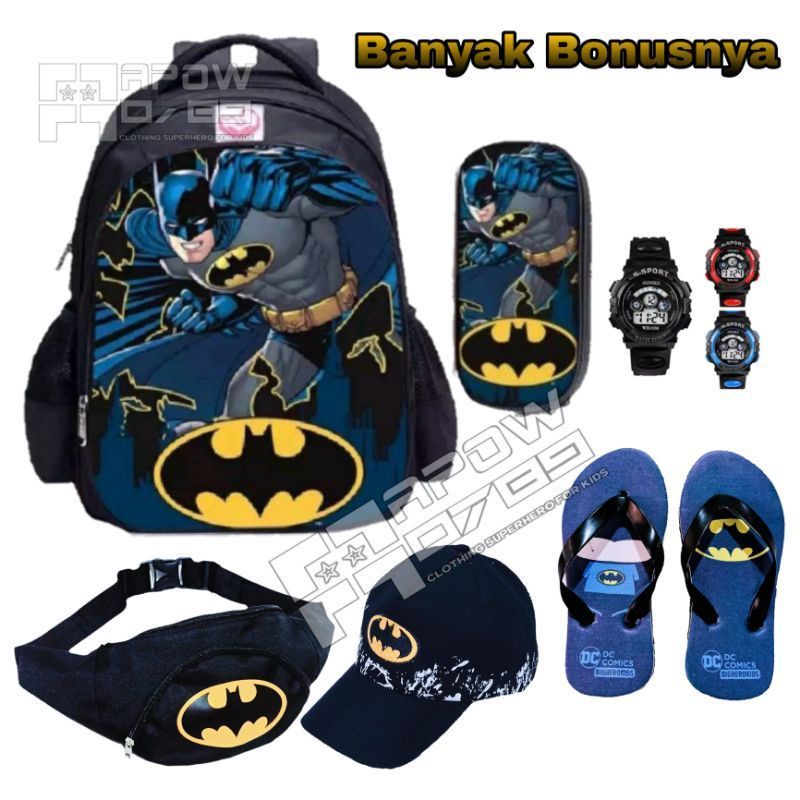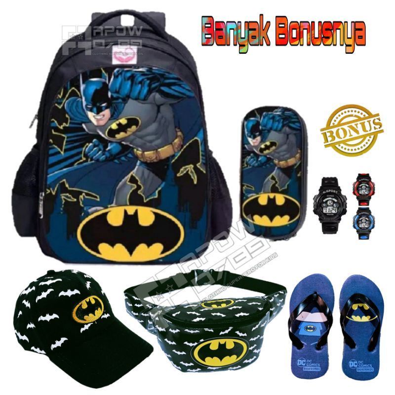 PAKET 6IN1 RANSEL ANAK KARAKTER BATMAN TAS RANSEL ANAK SEKOLAH LAKI-LAKI