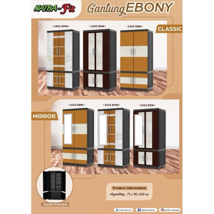 Naiba 1503 / 1523 / 1524 / 1504 - Lemari Gantung Naiba Kaca / Lemari Hanger Mr plass /Lemari Pakaian Gantung Batik