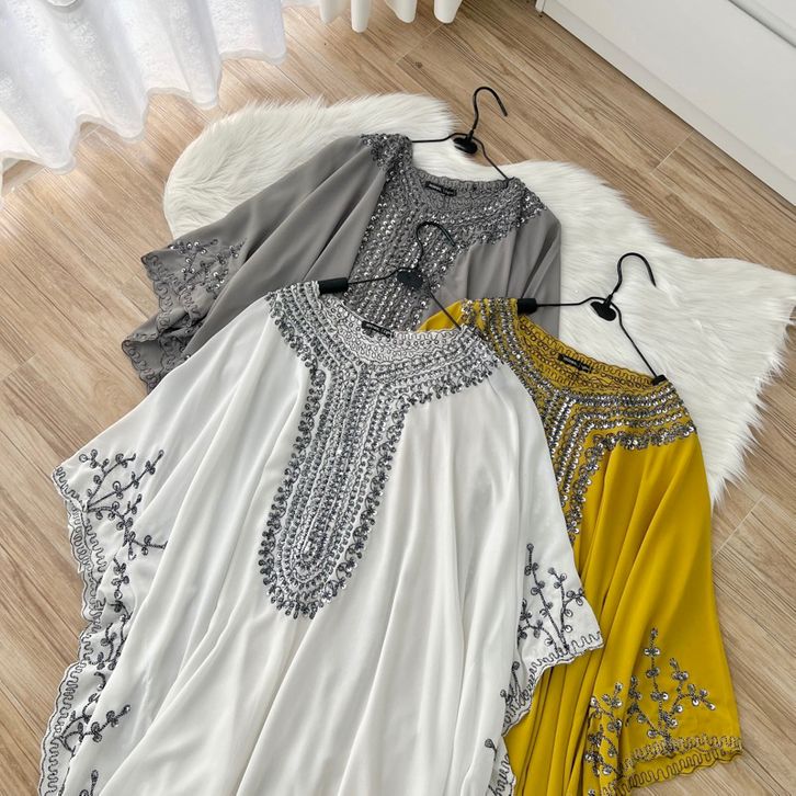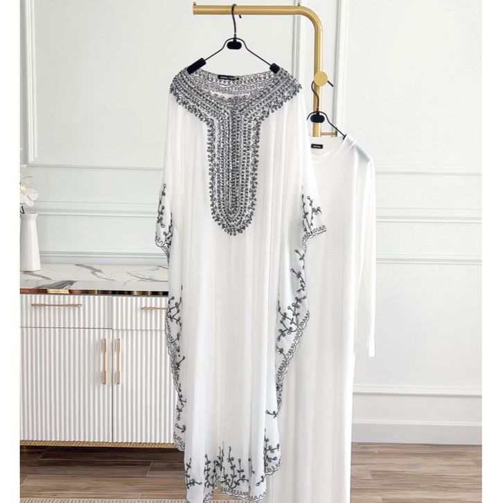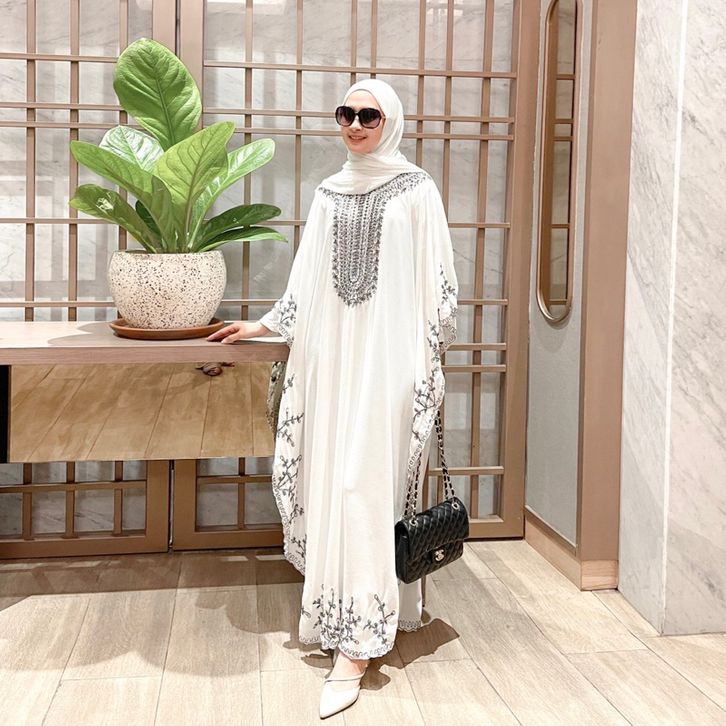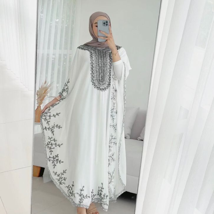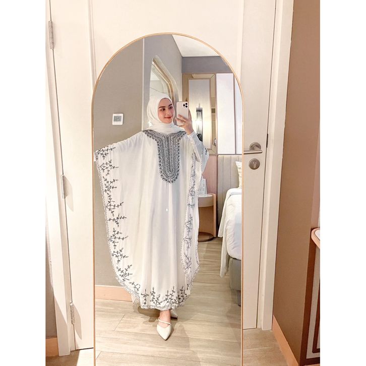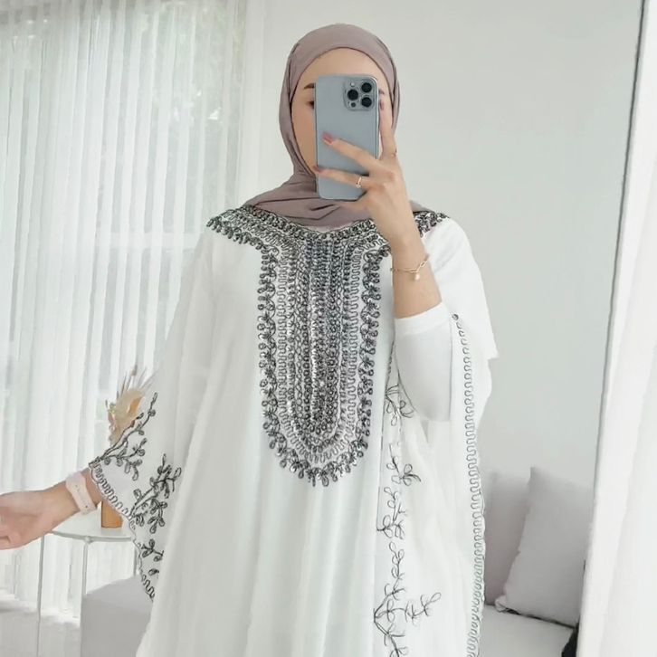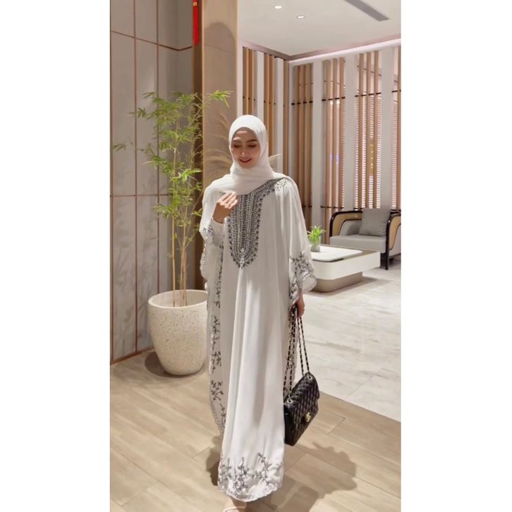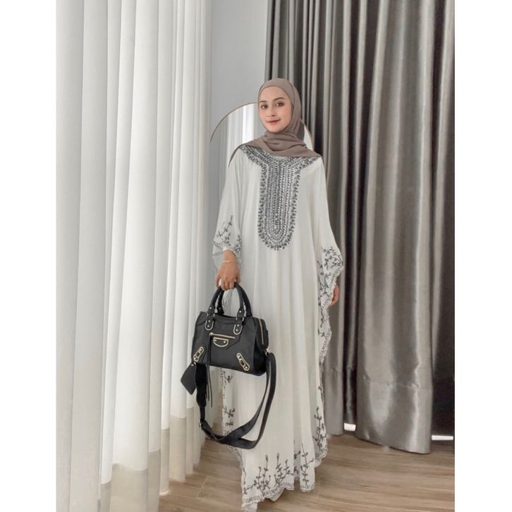 CAFTAN LEBARAN CERUTY MEWAH AQIQAH LAMARAN BORDIR PAYET WHITE BONUS / FREE MANSET BIANCA KAFTAN KEREN