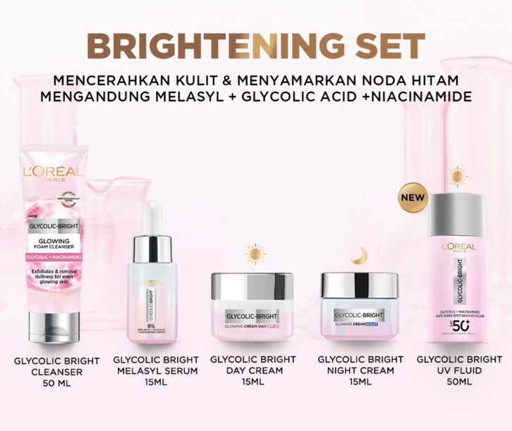 Loreal Paris Official Store Glycolic Bright Glowing Skincare Set
