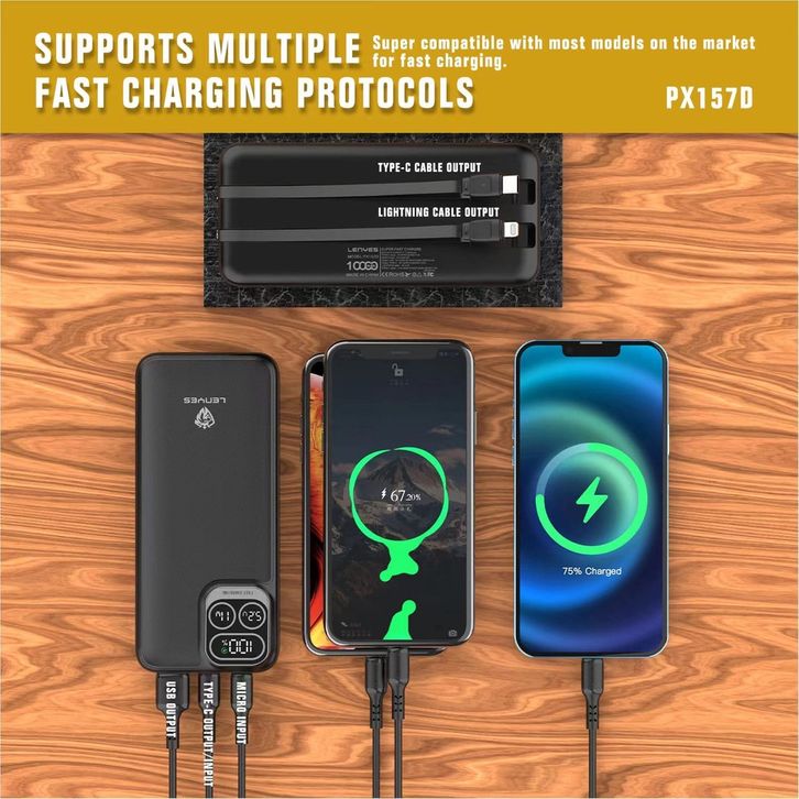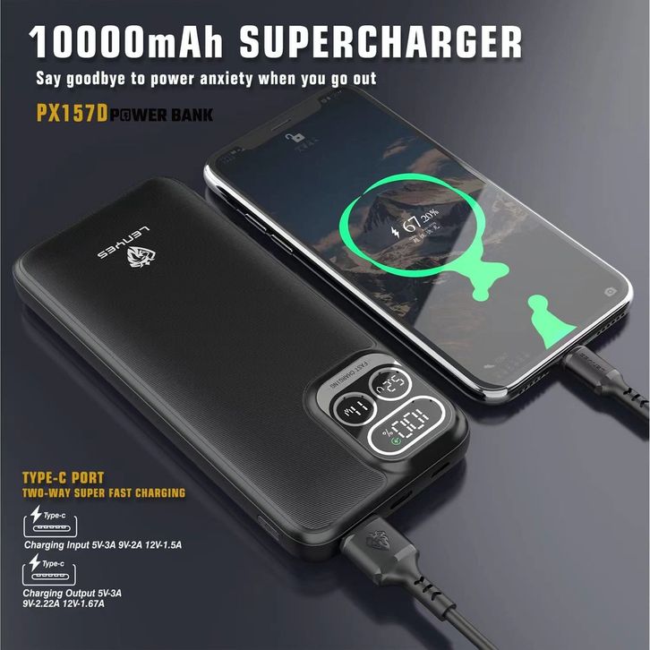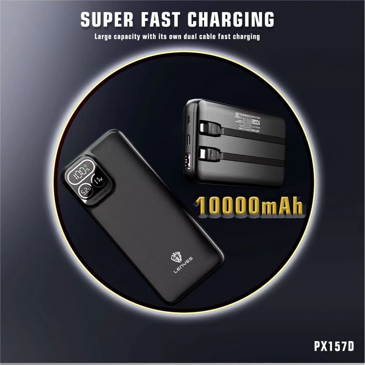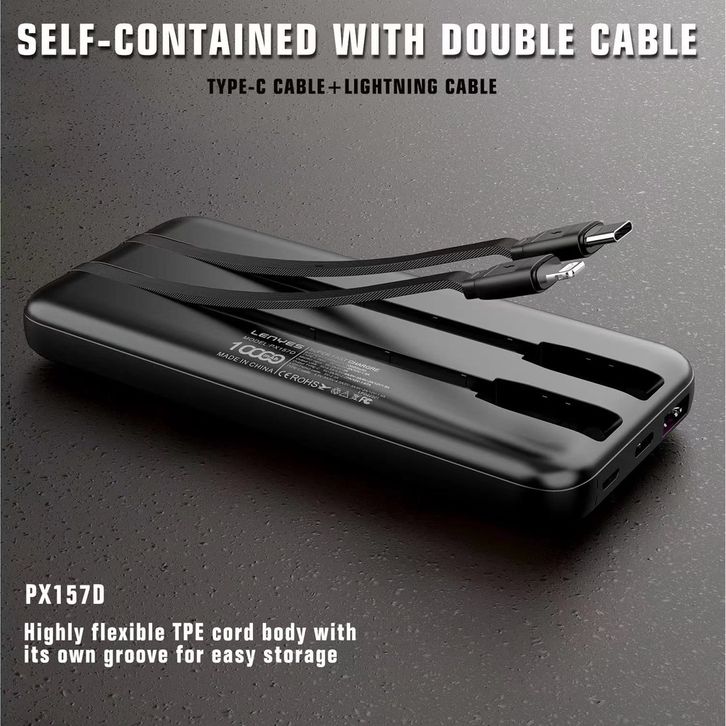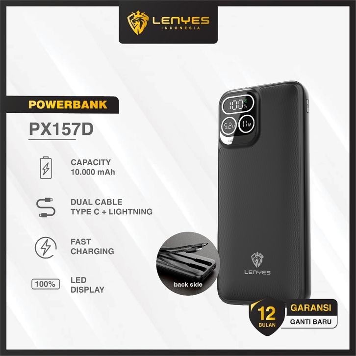 LENYES PX157D Powerbank 10000mAh Fast Charging Mini Slim Portable 2 Cable Line Display Light Indicator Power Bank
