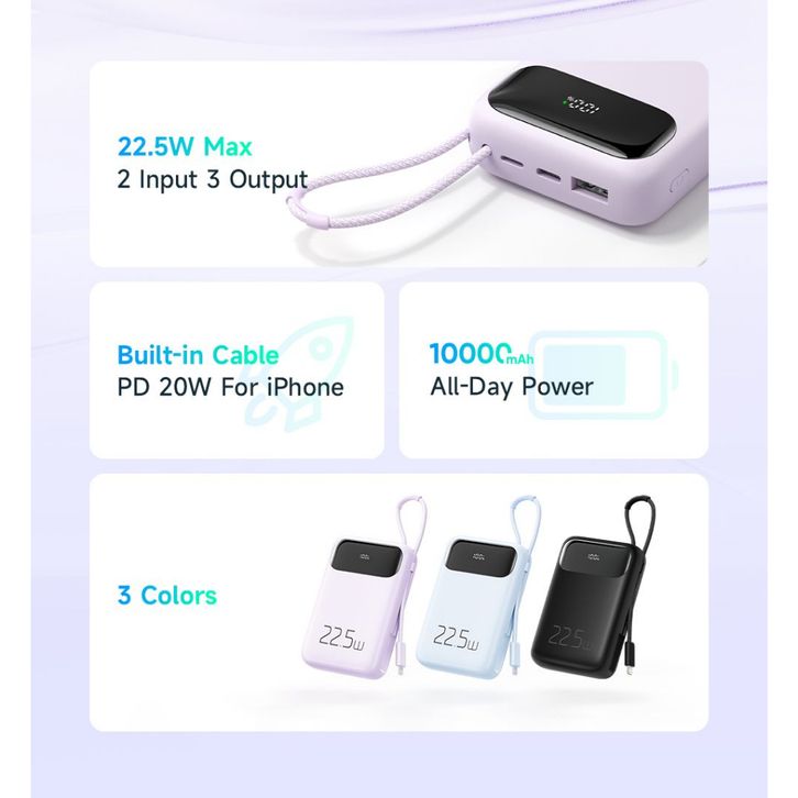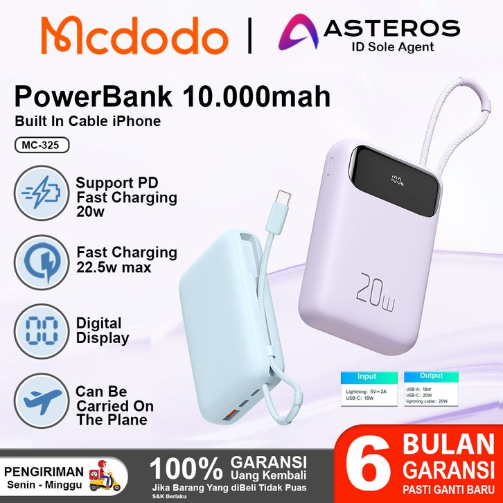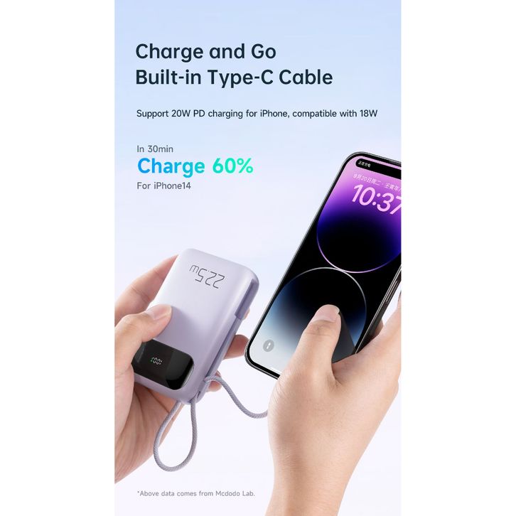 MCDODO PowerBank 10.000mah FAST Charging 22.5W Built in Cable iPhone MC-352