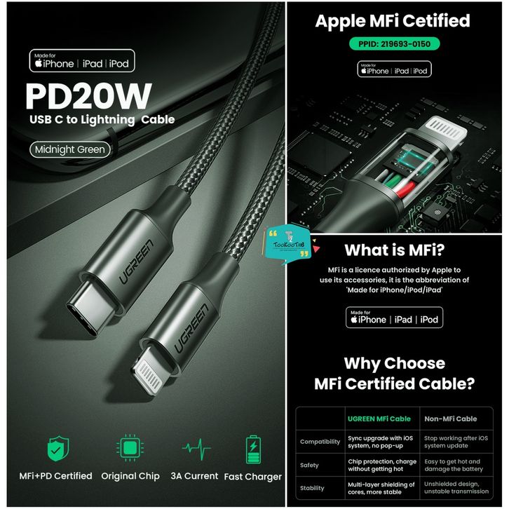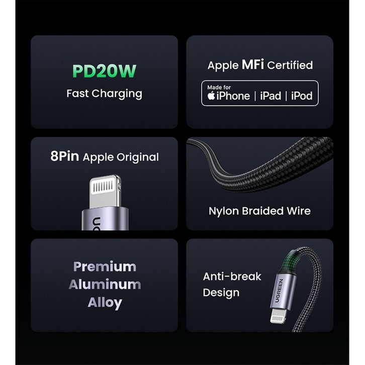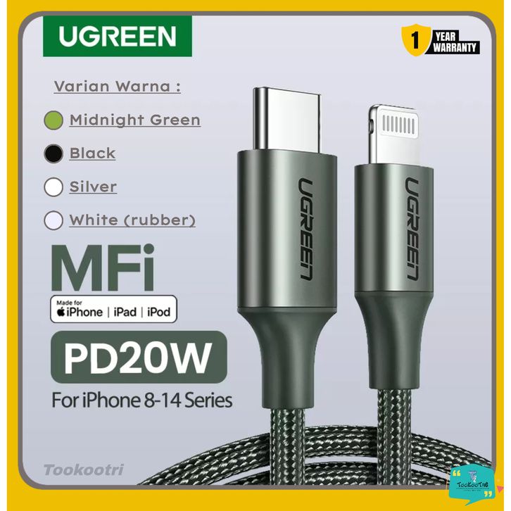 UGREEN Kabel Data Charger for Iphone MFI Type C to Lightning 20W 3A PD Fast Charging Untuk Iphone seri 14 13 pro Max 1