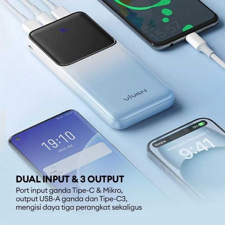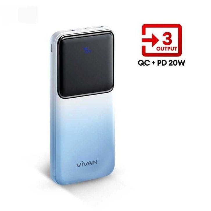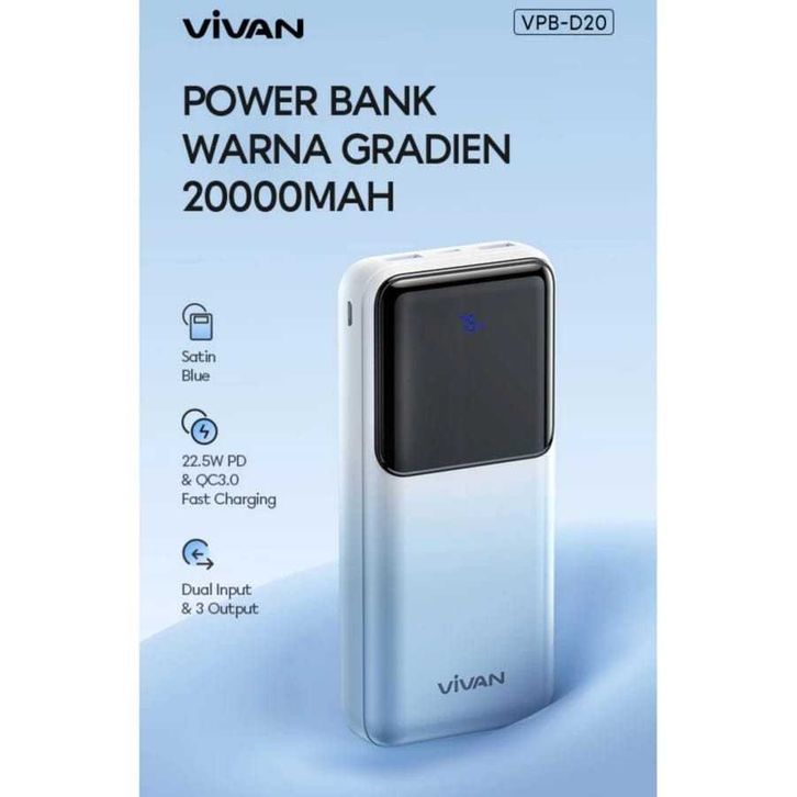 KHANZAACC VIVAN VPB-D20 PowerBank 20000mAh Fast Charging QC 3.0 PD 20W 2 Input & 3 Output