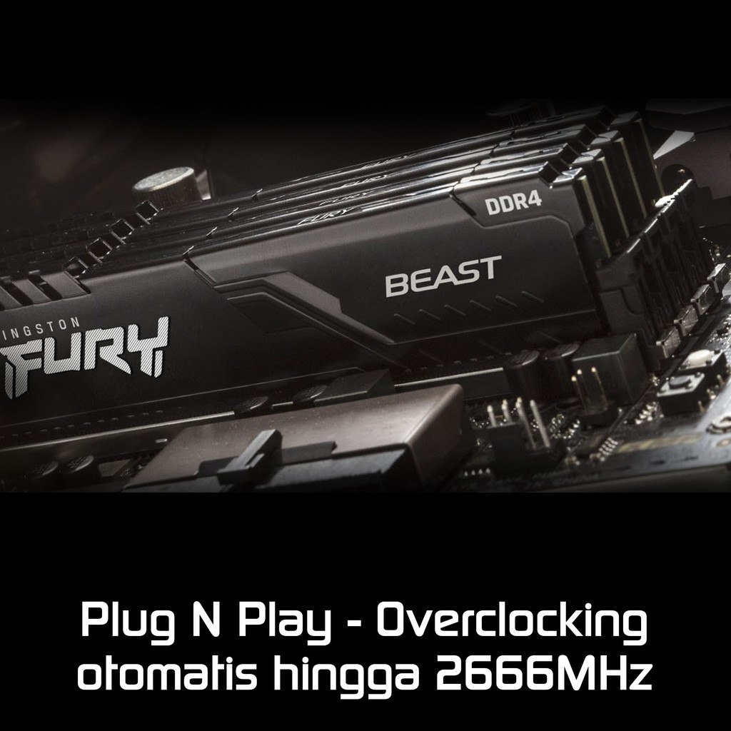 KINGSTON FURY BEAST SERI TANGGUH RAM DIMM 16GB 2666MHZ DDR4 (KIT OF 2) BLACK (KF426C16BBK2/16)