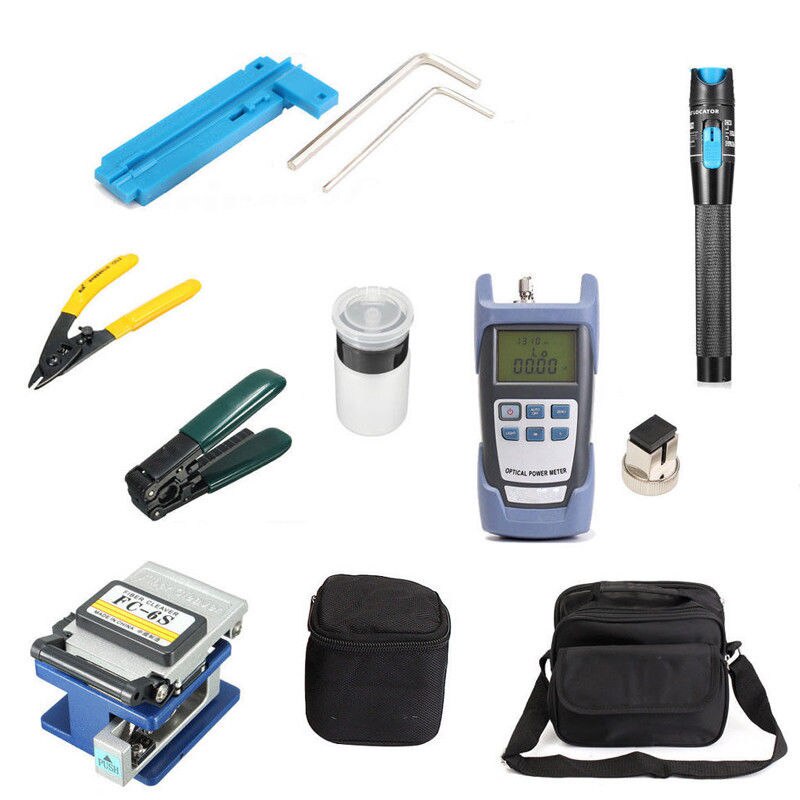 FTTH FIBER OPTIC TOOL KIT FC-6S FIBER CLEAVER OPTICAL POWER METER 10KM VISUAL FAULT LOCATOR STRIPPER