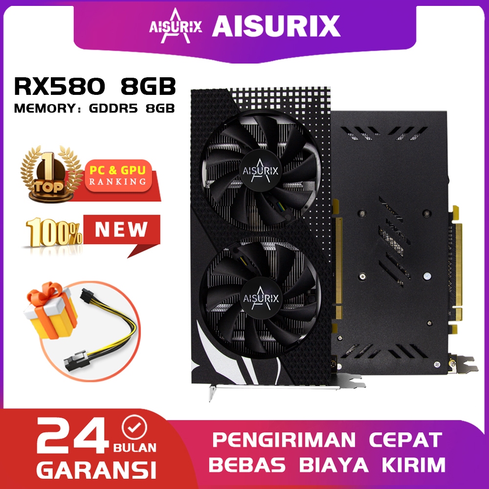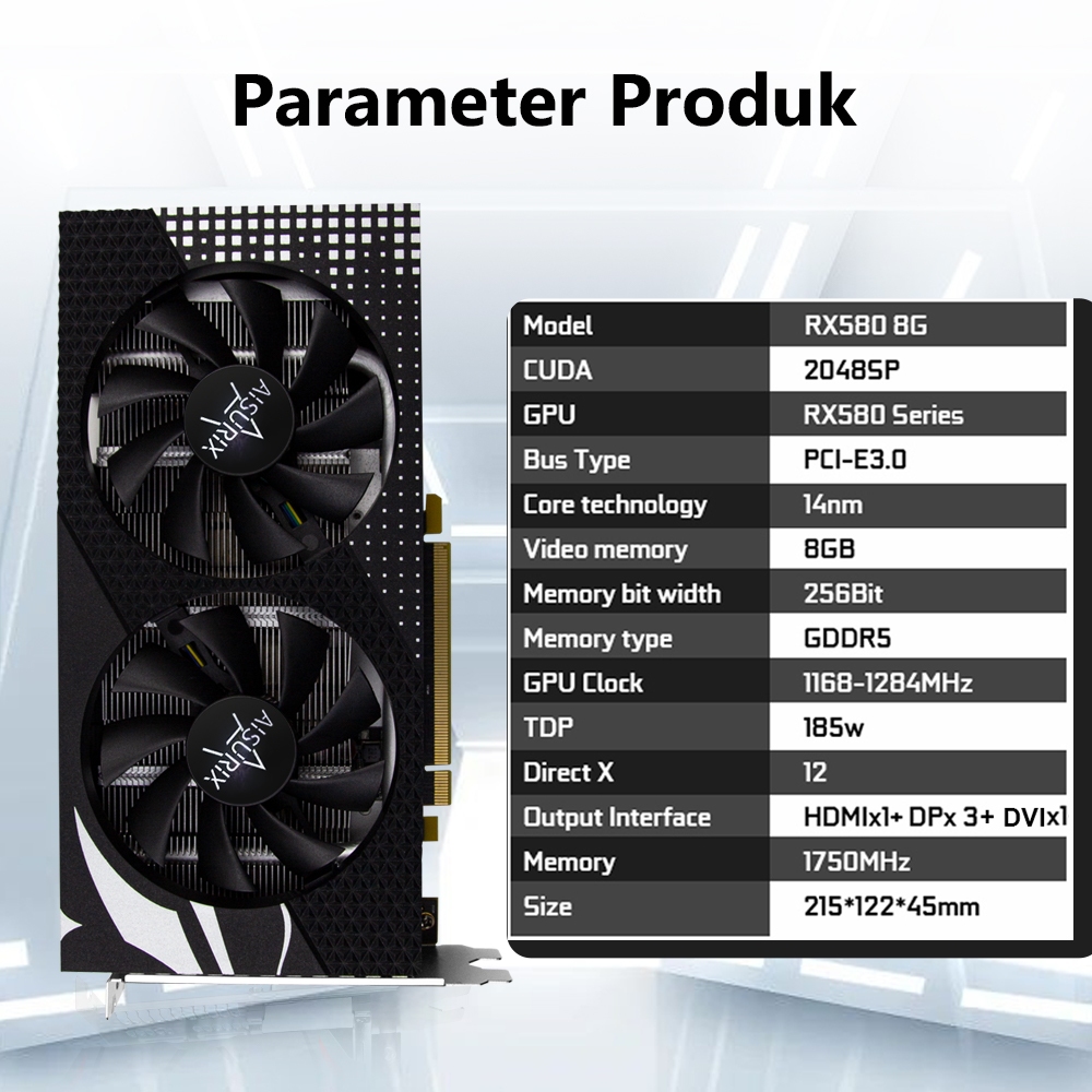 AISURIX VGA AMD RADEON RX 580 8GB VGA CARD DDR5 256BIT 2048SP HDMI NEW PC GAMING VGA