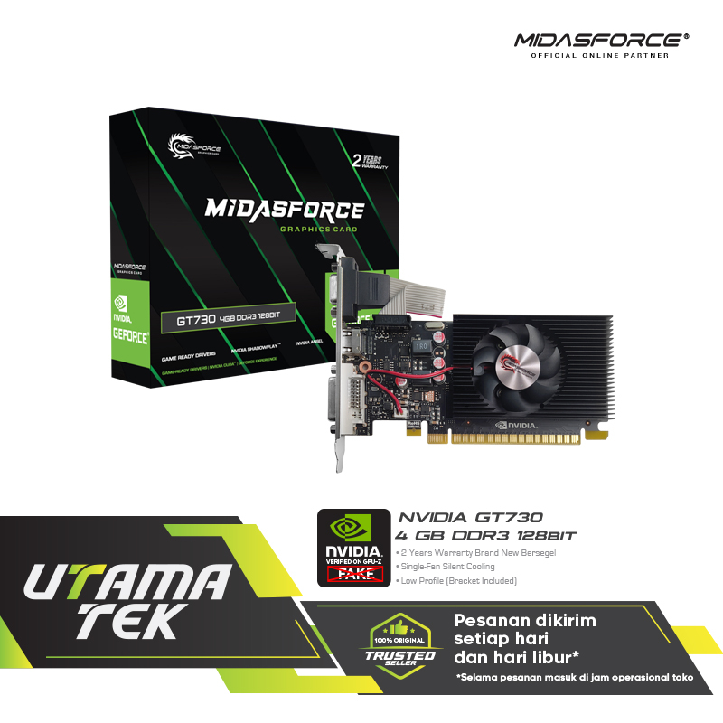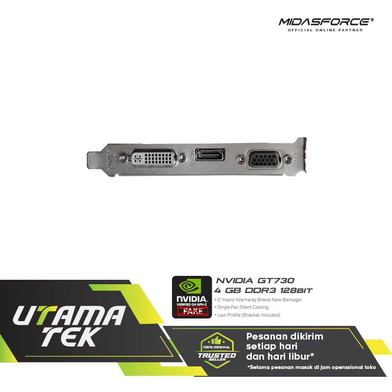 VGA NVIDIA MIDASFORCE GT730 DDR3 128BIT 4GB LP GARANSI 2 TAHUN