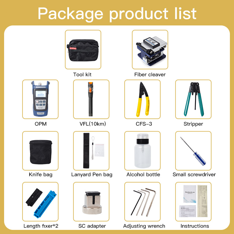 FTTH FIBER OPTIC TOOL KIT WITH FIBER CLEAVER -70+6DBM OPTICAL POWER METER 10MW VFL OPM