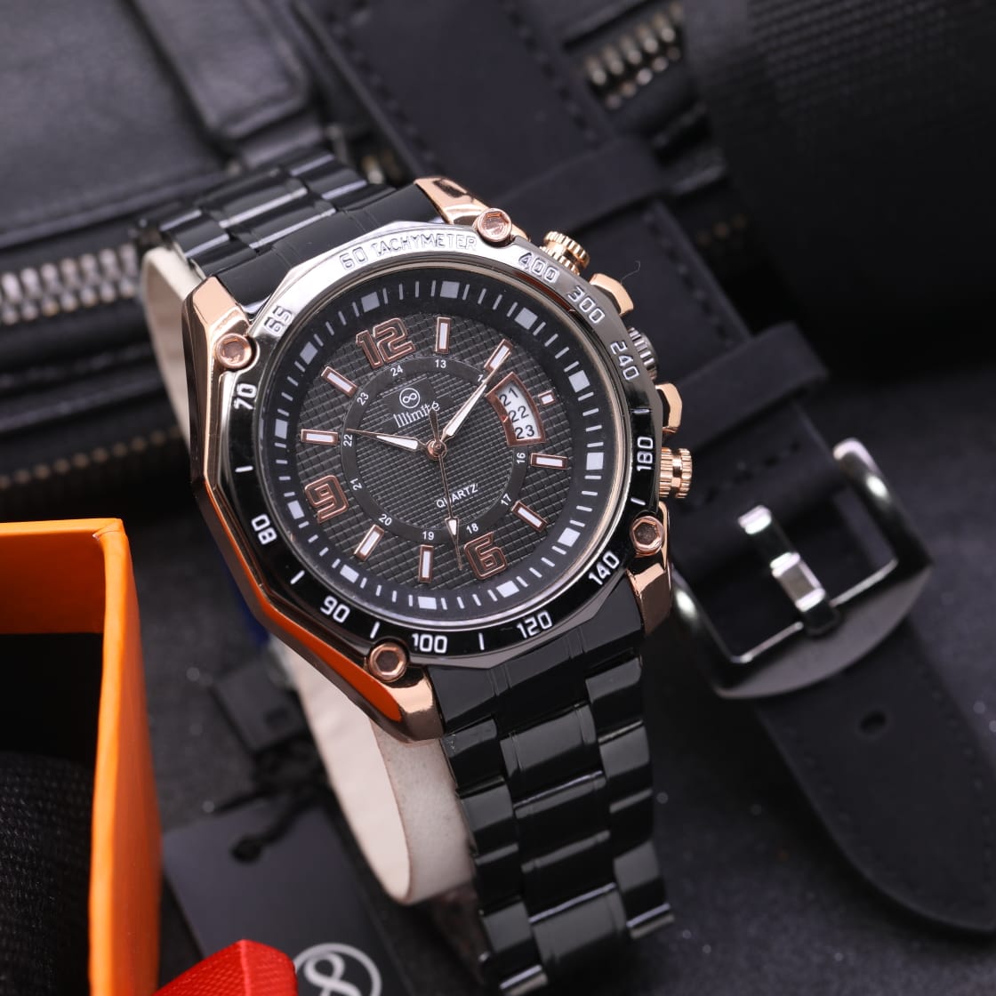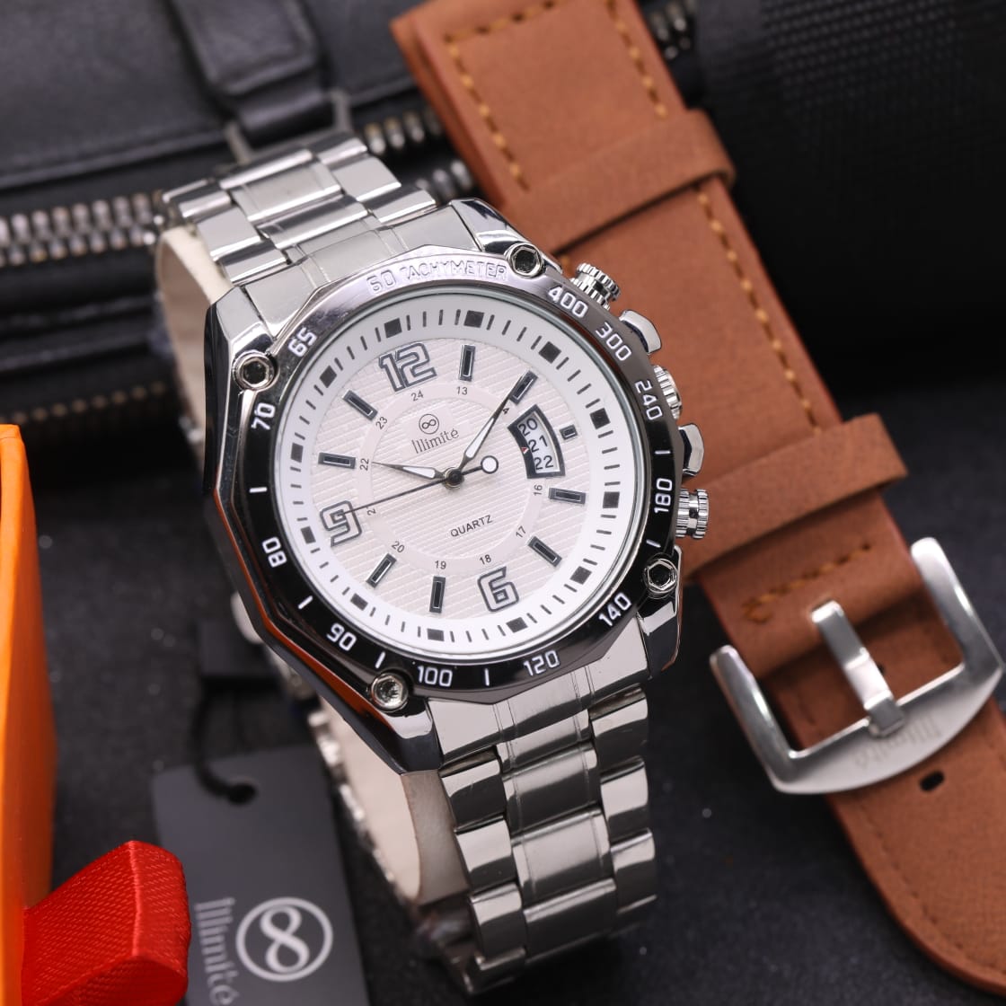 Promo - Jam Tangan Pria Original Illimite I1102TL Tanggal Rantai Free Tali Kulit Box Original , Kartu Garansi & Paperbag