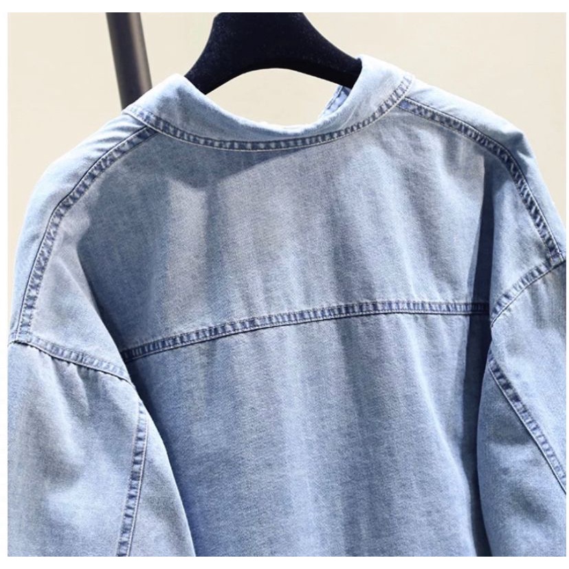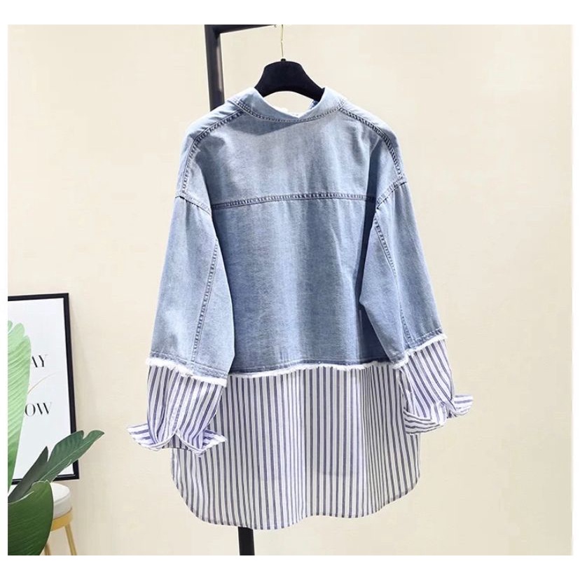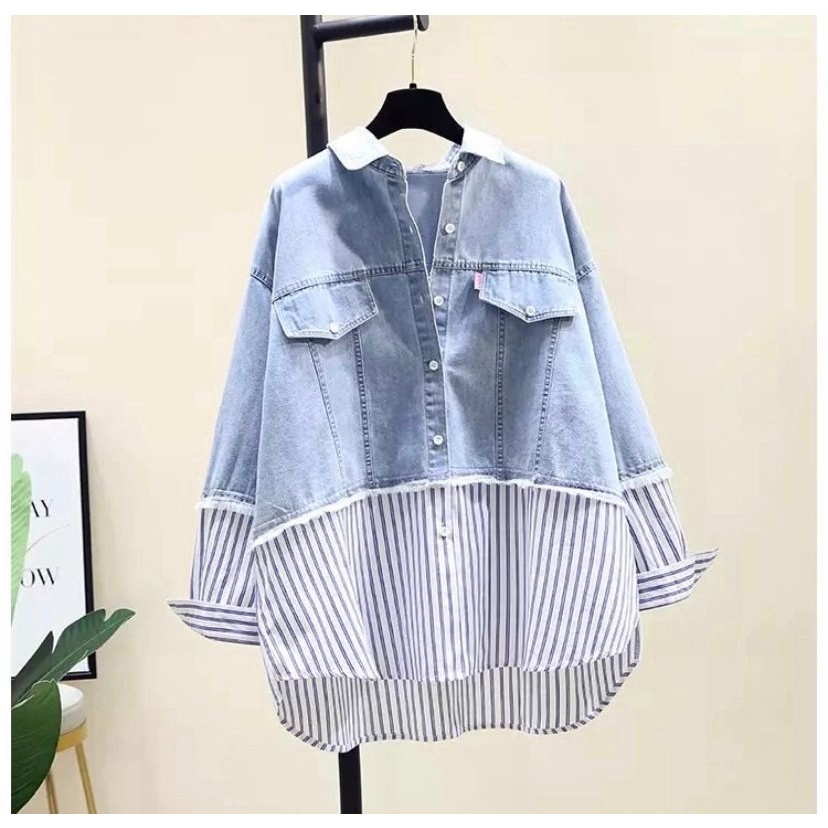 947- KEMEJA JEANS DENIM ATASAN WANITA KOMBINASI SALUR
