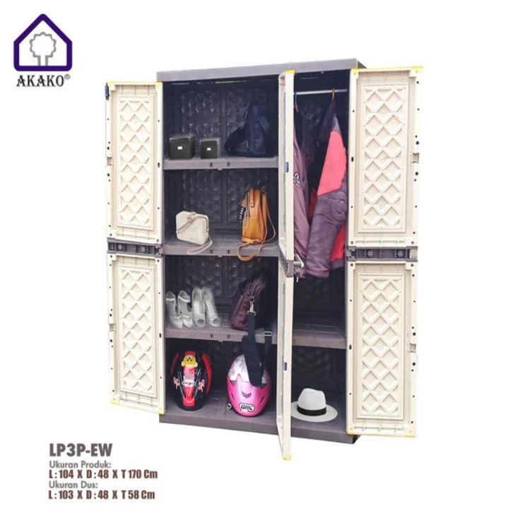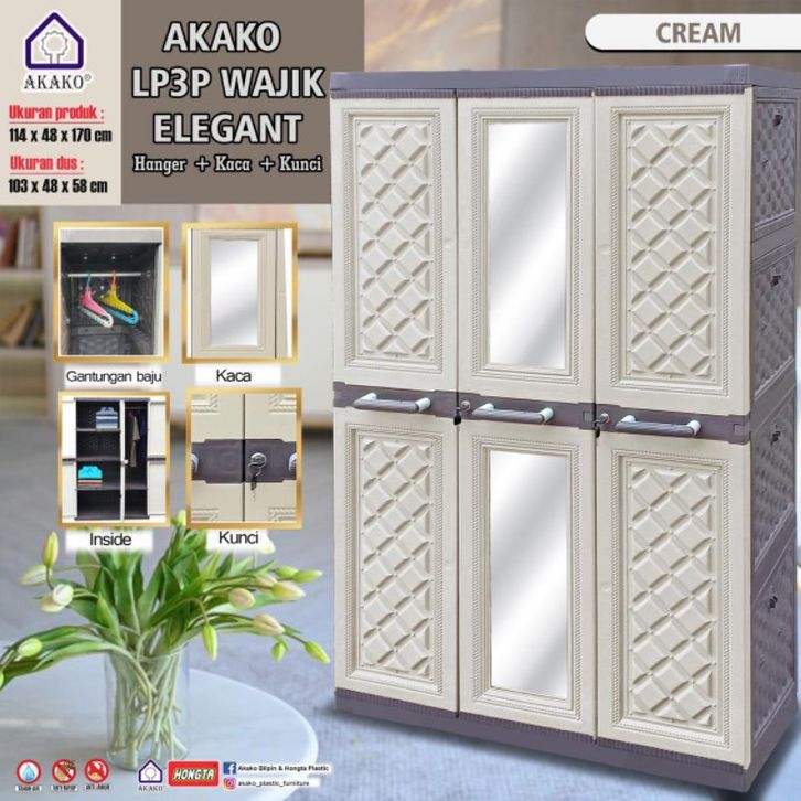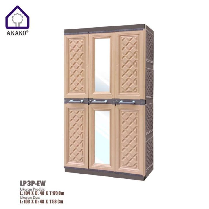 PROMO AKAKO - Lemari ELEGAN Motif WAJIK + Kaca + Kunci (LP3P EW)