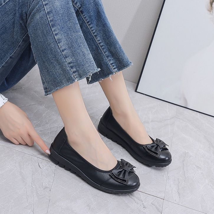 LURAD Sepatu Wanita Slip On Kulit Beige Sepatu Kerja Cewek Formal Nyaman Dipakai OOTD 1887