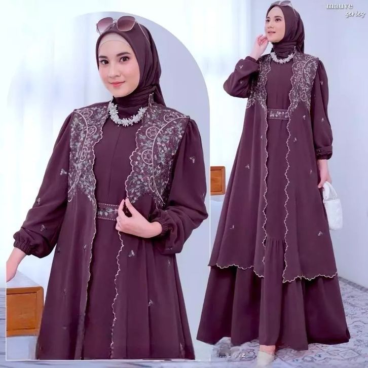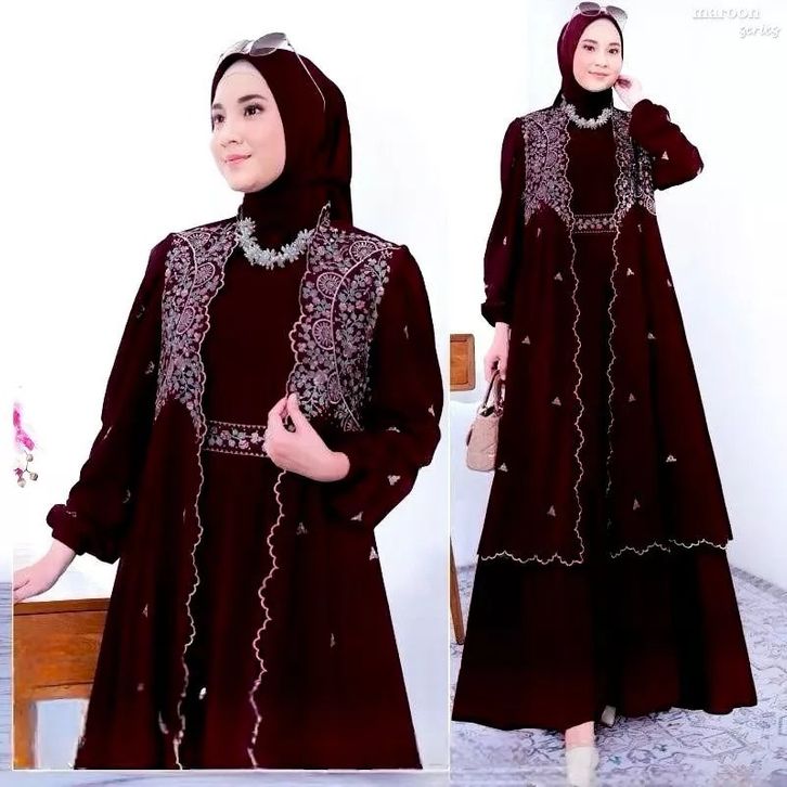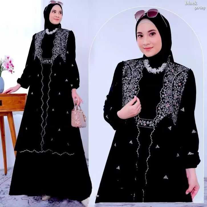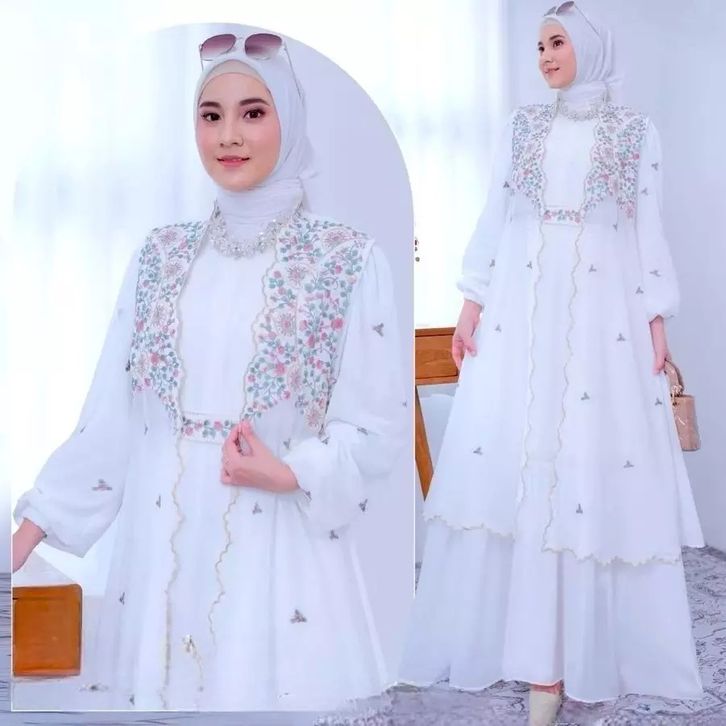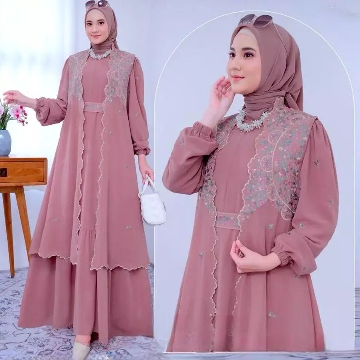 Syahira Dress Bordir Gamis Kekinian Gamis Kondangan Terbaru 2026 Mewah Elegan Bahan Ceruty Babydoll Mix Bordir Gamis