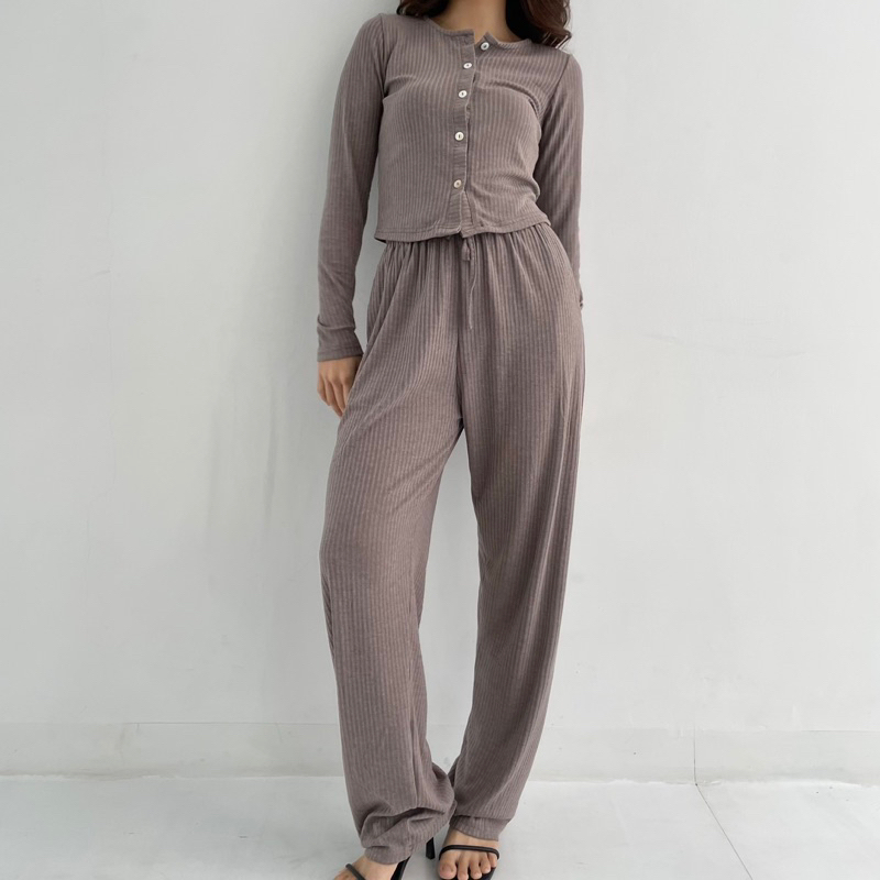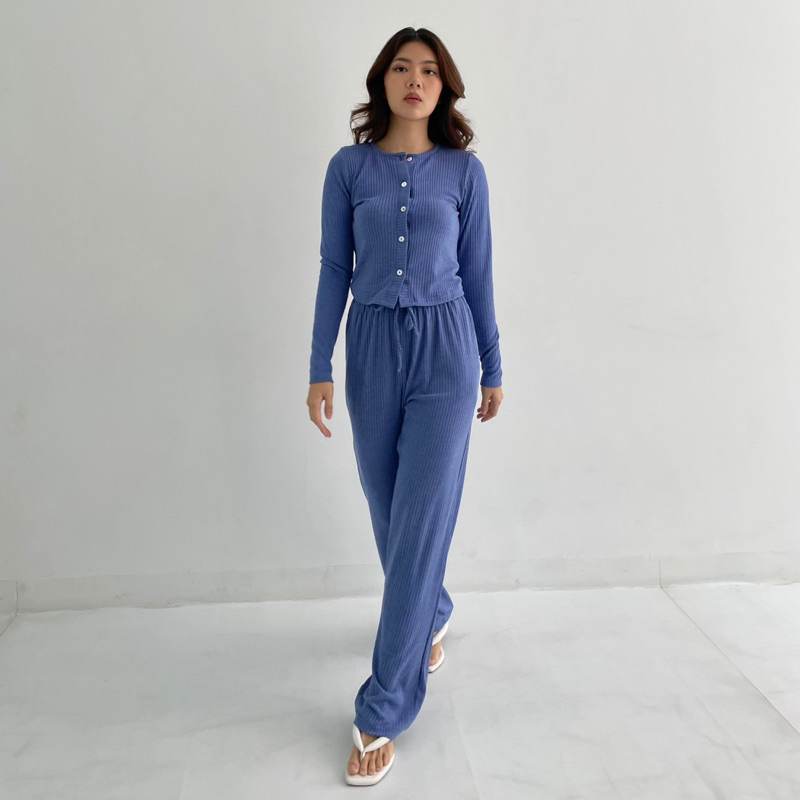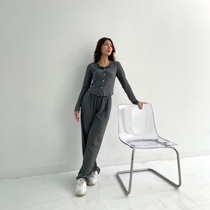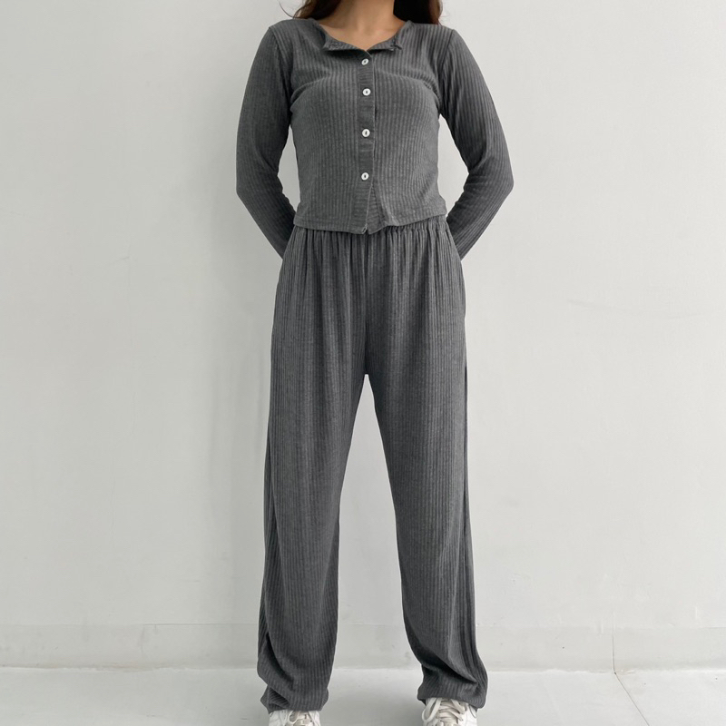 SEOUL SET | SETELAN WANITA RIBBED KNIT CARDIGAN SET LENGAN PANJANG CELANA PANJANG HIGHWAIST HIGHWAISTED PANTS