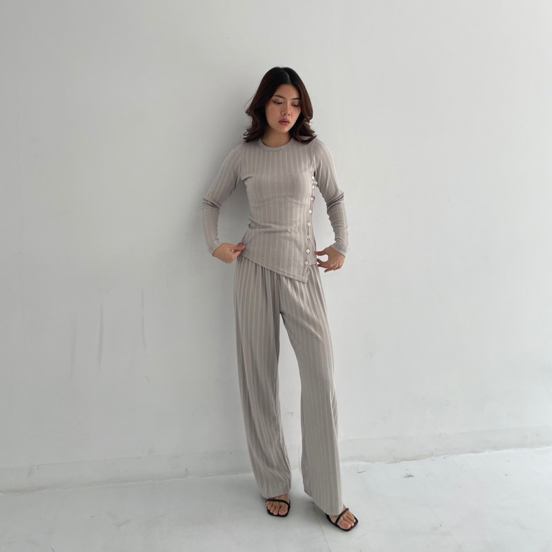 EDEN SET | SETELAN WANITA RIBBED KNIT SET LENGAN PANJANG CELANA PANJANG HIGHWAIST HIGHWAISTED PANTS
