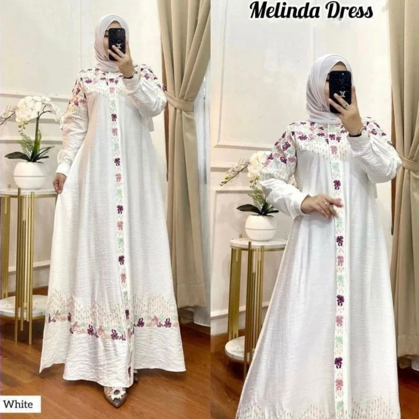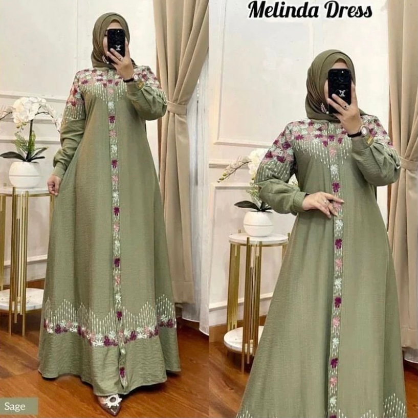 MELINDA DRESS CRINKLE AIRFLOW PREMIUM GAMIS KRINGKEL KOMBINASI BORDIR GAMIS TERBARU ELEGAN SIMPLE MEWAH GAMIS BORDIR