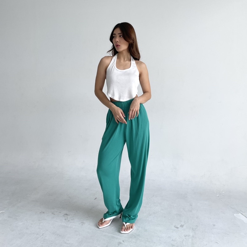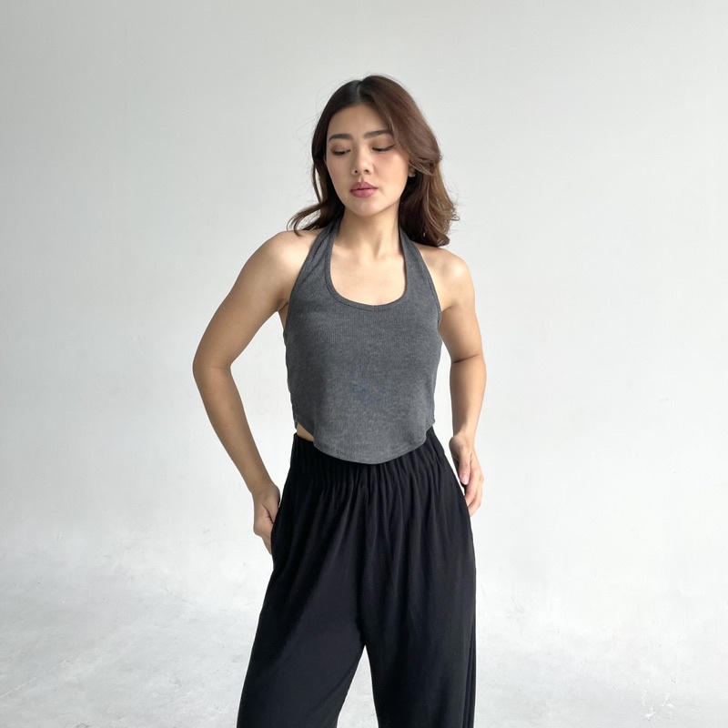 QUA T0P - RIBBED KNIT HALTER TANK TANKT0P SUMMER ATASAN HALTER STRETCH RIB RIBBED KNIT