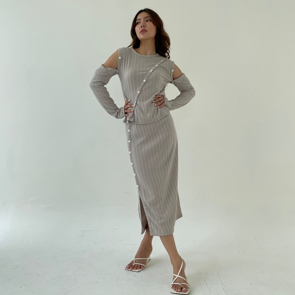 SUNDAY SET | SETELAN WANITA ROK PANJANG ATASAN BERLENGAN RIBBED KNIT SET LENGAN PANJANG MIDI SKIRT KOREAN