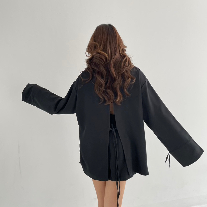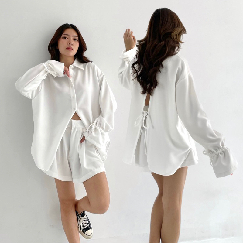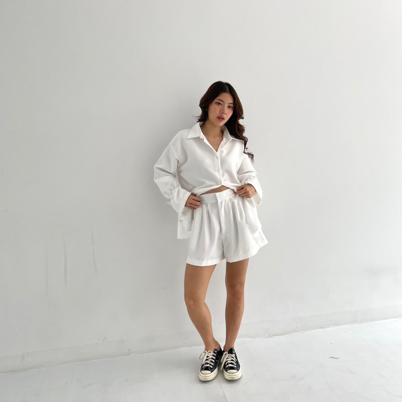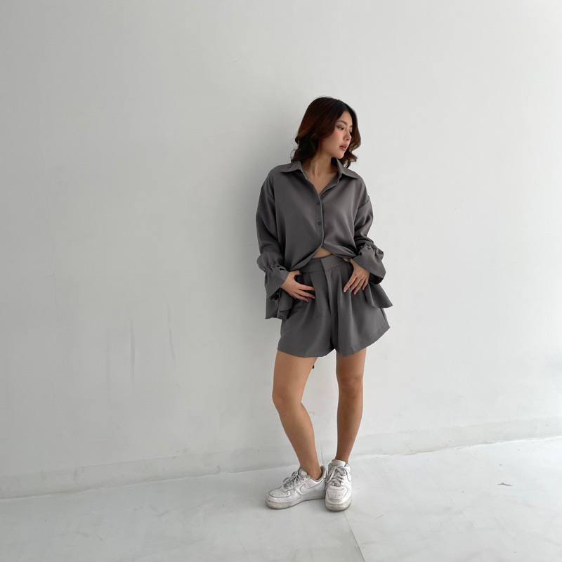 VENICE SET | SET KEMEJA WANITA PANJANG SETELAN CELANA PENDEK HIGHWAIST SHORT OVERSIZED KOREAN OUTER SHIRT