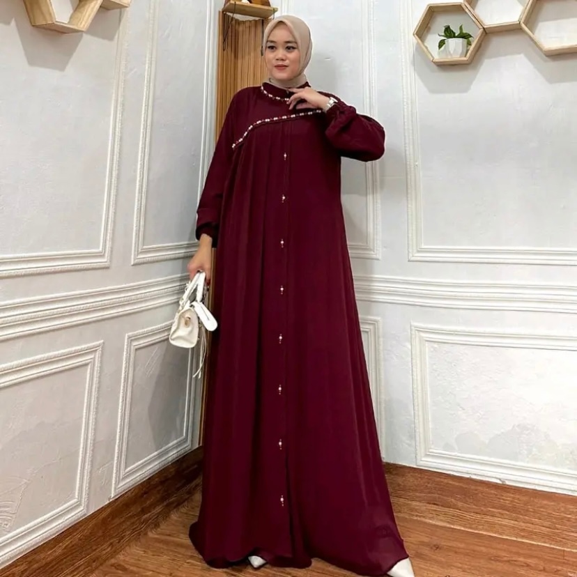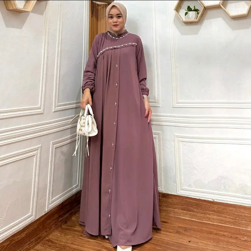 CLARA DRESS CRINKLE AIRFLOW PREMIUM GAMIS KRINGKEL KOMBINASI PAYET MUTIARA GAMIS TERBARU ELEGAN SIMPLE MEWAH GAMIS PAYET