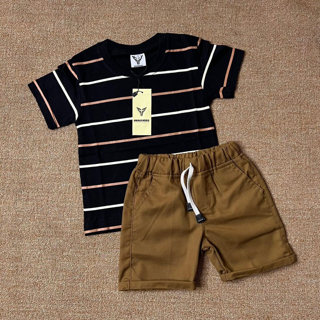 SETELAN ANAK KAOS SALUR HITAM DAN CELANA ANAK COTTON COMBED 24S