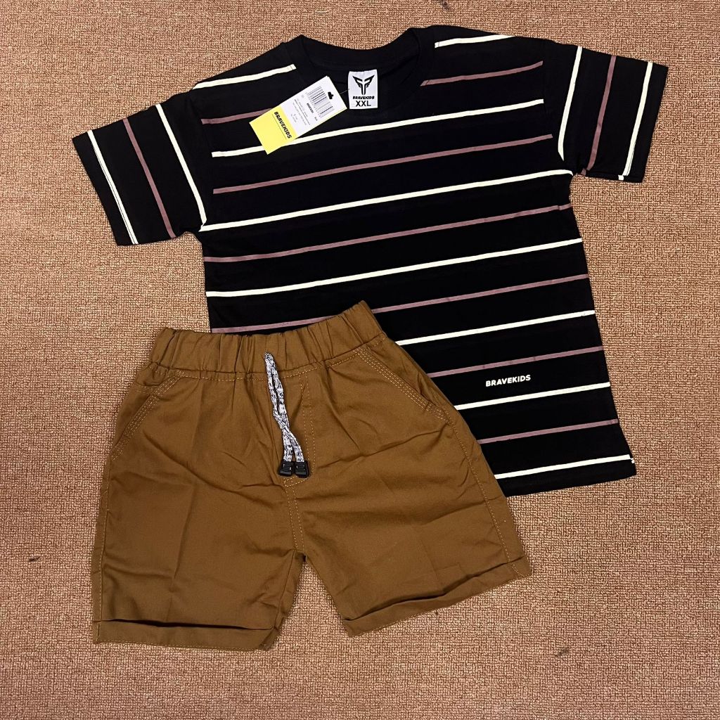 SETELAN ANAK KAOS HITAM SALUR DAN CELANA COTTON COMBED 24S