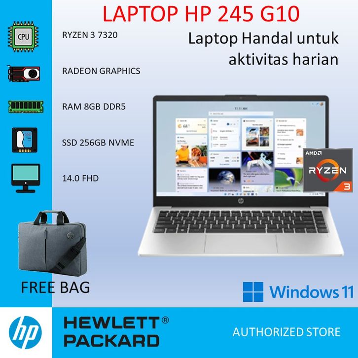 Laptop HP 245 G10 Ryzen 3 7320U 8GB Ram 256GB SSD Win11 14.0 FHD