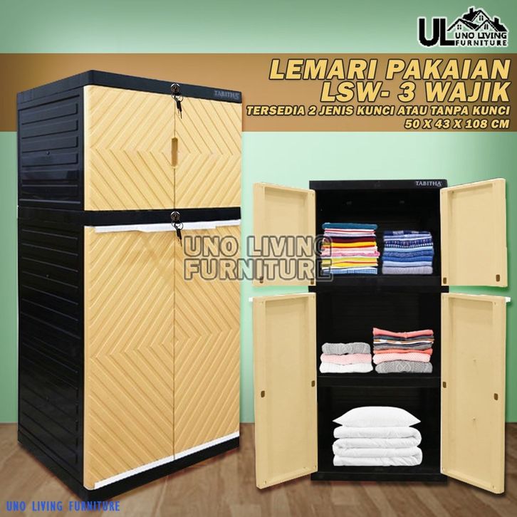 LEMARI PAKAIAN MODEL TERBARU TABITHA 3 SUSUN KUNCI LSW 3 WAJIK BARU LEMARI PAKAIAN PLASTIK LS2P