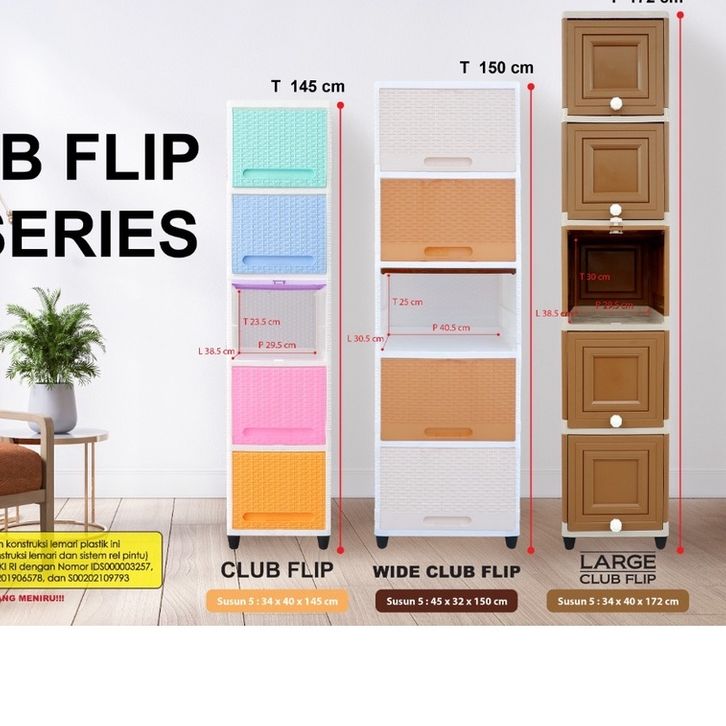 Lemari Plastik Wide CLUB Flip Lemari pakaian Lemari Penyimpanan Serbaguna Ukuran Lengkap Lemari Pakaian Plastik