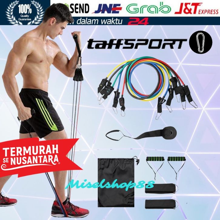 (Termurah..!! asli taffsport) 11 IN 1 Resistance Band Bands Set Alat Fitness Portable Workout gym